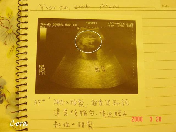 晚上照超音波時,我和毛拔都偷瞄到這傢伙的頭圍直徑到達101mm!(後來,超音波師發現我們好像很介意,又重量了一次,改為986mm,後來和我們說,她都估計得比較保守!)
