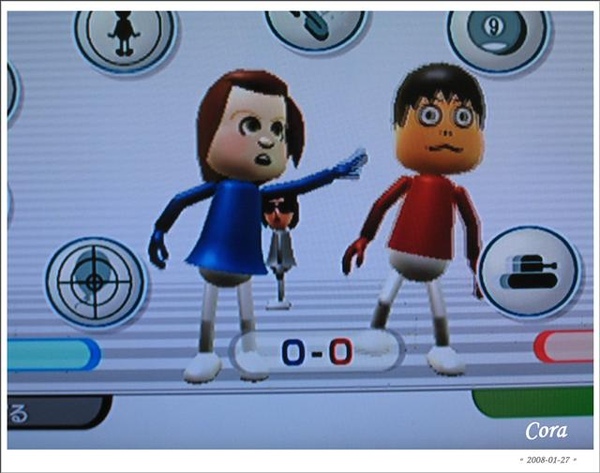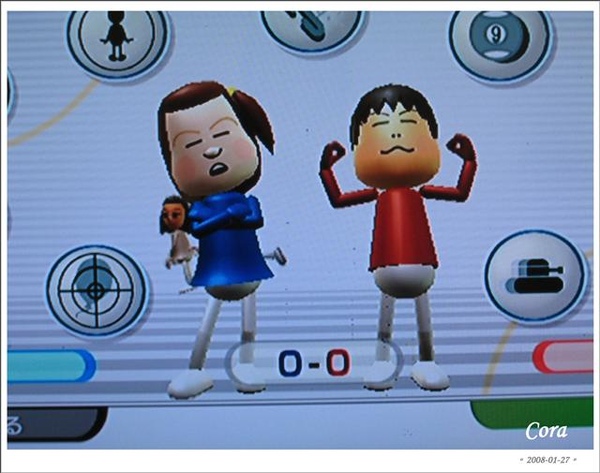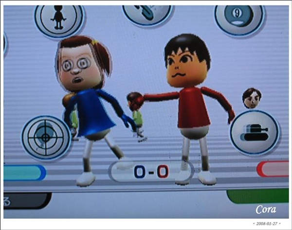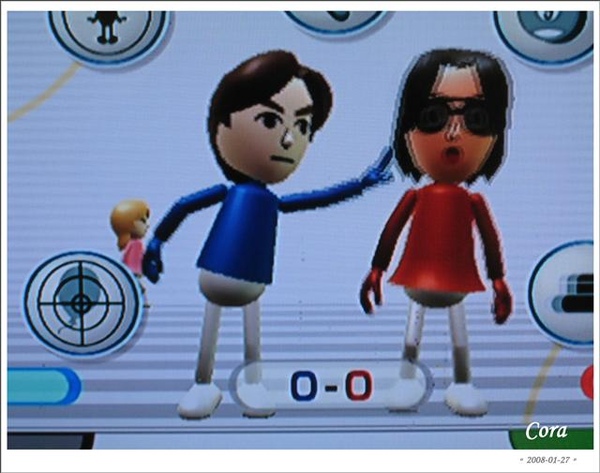 我弄了個大眼鏡,這樣在first step(和Wii的第一次接觸)的某個遊戲裡,就可以很容易的找到我自己,嘿...
