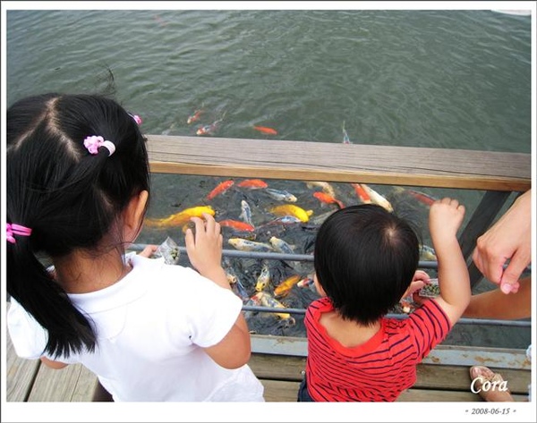 光是餵魚,兩隻屁屁蛋就很開心,這裡的魚十分的貪吃,被餵習慣了...