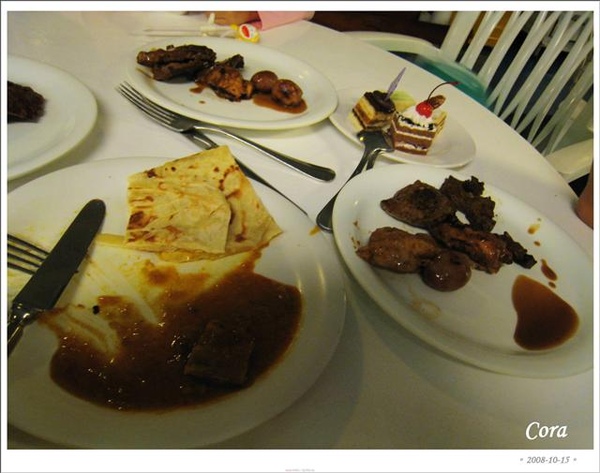 拔比他們先去取菜,拿回來的東西大同小異,有烤牛肉.雞肉.一口小香腸.馬來西亞甩餅和蛋糕,還有水果(西瓜/哈密瓜)