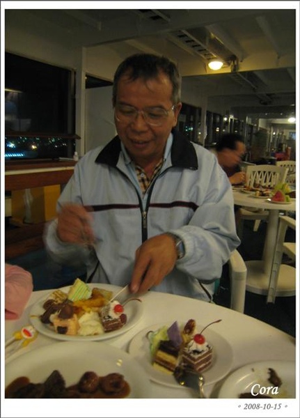 (郵輪上的規定,每餐每位旅客可擇一餐廳用餐,若是同一餐吃了兩間餐廳,第二間就得付費,工作人員會用房卡控管,所以這餐算是大招待嗎?沒刷房卡耶)