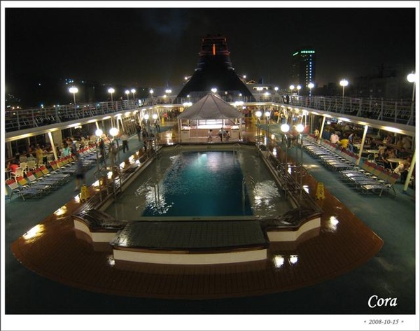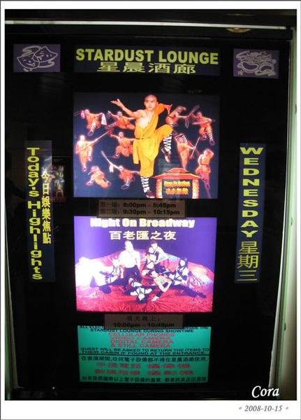 吃完燒烤大餐,就往星晨酒店觀賞今天的功夫秀,剛好表演開始時,船也開始啟航