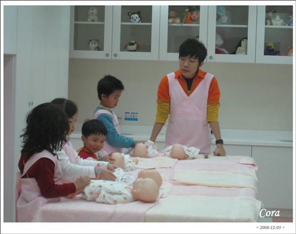 大姐姐也真的很有耐心的等寬和另一個小朋友慢慢脫完自己的褲子....