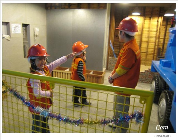 看他真的玩得很高興耶...偷偷溜去看毛毛姐姐在做什麼?原來在當建築工人呀~而且毛毛眼尖,還發現耶誕老公公