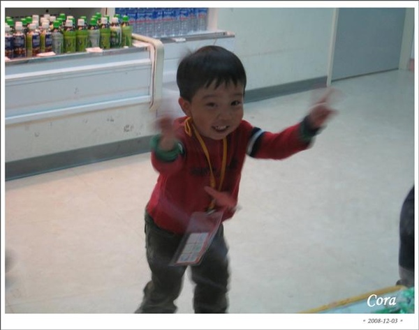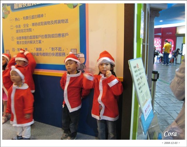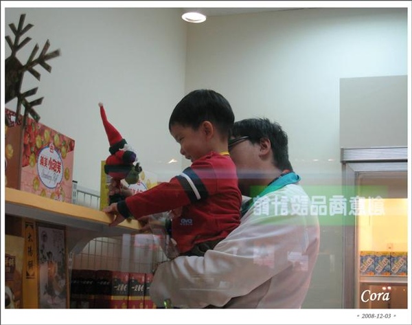 再跑回來看阿寬,體驗已經結束,咦?大哥哥把他抱起來做什麼?原來這裡也有耶誕老公公呀...寬寬真幸運...