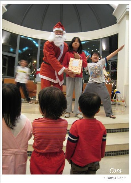 接著重頭戲來了,耶誕老公公出現了(這個耶誕老公公也是臨時請出來的),不管是大小孩還是小小孩都非常興奮