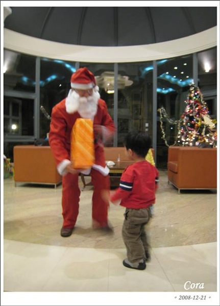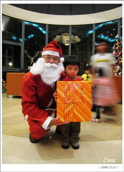 最後情商耶誕老公公的發禮物助手(就是保全阿公啦),趕快把寬寬的禮物準備好