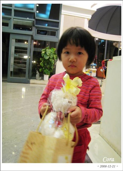 第一個就先發到小品萱的禮物,品萱害羞的躲在媽媽懷裡;