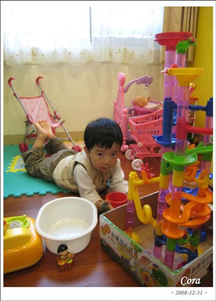 寬一開始還學姐姐在地上亂躺(汗..)...後來看到佳佳乖乖站著等