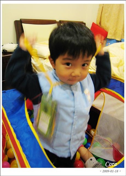 陪媽媽去衝年貨大街的”愛的世界”衣服也帶,還一張一張拿出來數給鄰居小姐姐聽,每次都要解釋給別人聽他帶的是什麼...切...拜託喔...