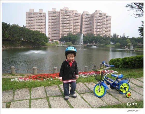寬寬堅持要戴著帽子牽車,好好笑,來交大這麼多趟,第一次走到竹湖這邊,很漂亮,但湖邊不適合這個小鬼牽車散步