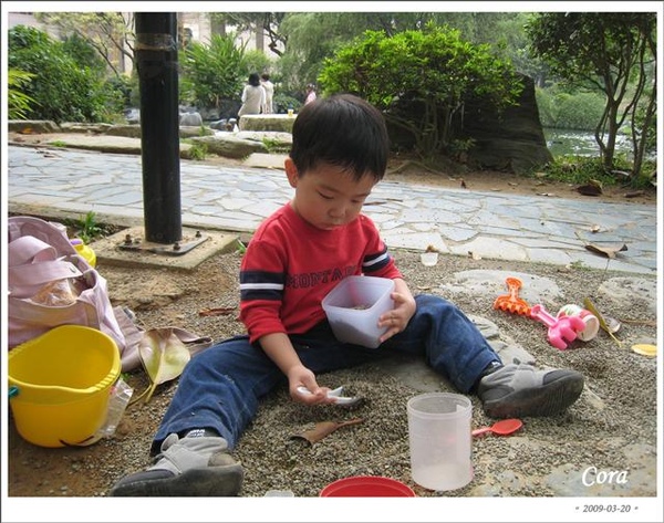 這次突然發現思源池附近居然新舖了不少小石子,兩個孩子就和附近的小朋友一起挖起沙子來