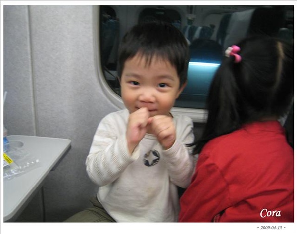 先去搭高鐵,兩個小傢伙已經興奮得無法控制了....幫毛買了張兒童票,我們三個會比較好坐,我的全票還卡到打八折的時段