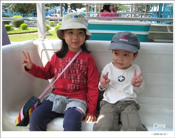 天氣超熱,玩得差不多了,兩隻都曬成小黑炭,手中還剩三張票,拗了黃小寬再坐一次咖啡杯(他不肯再坐迴旋椅了),就差不多該走了