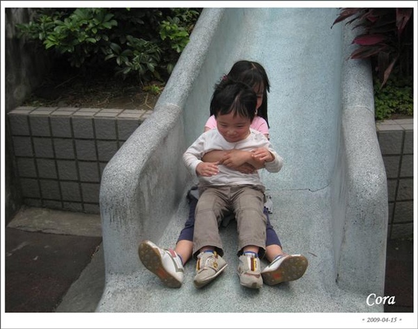 然後姐姐非常照顧她,一而再再而三的抱著寬寬溜,寬興奮得不得了,笑得超開心,兩個人不知道溜了多少遍
