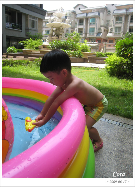 所以小朋友們又來個第二回合,把第一輪泡溼的泳衣再度穿上,連小寶的游泳尿布也是,哇哈哈...(只是小寶還是沒下水)