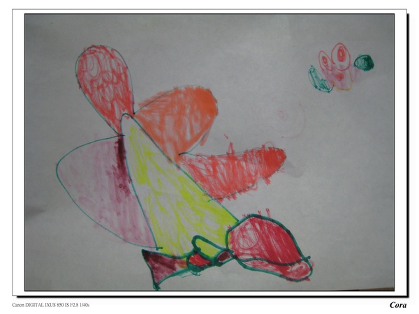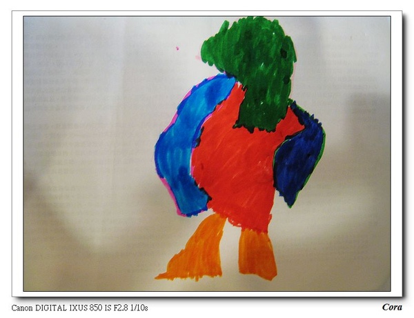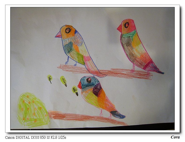 毛毛在畫畫課畫的小鳥,這是用色鉛筆畫的,配色很讚,連我都要甘拜下風了