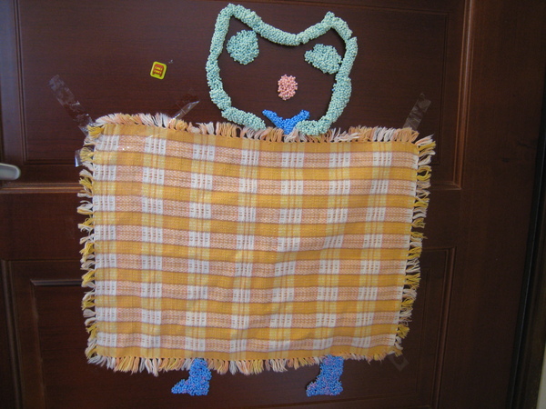 又搞笑的幫青蛙黏了一塊布當衣服,貼在門上,還蠻好笑的