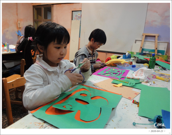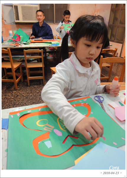 我和老師都知道今天的課題,對阿寬來說太難,就讓寬剪簡單一點的東西