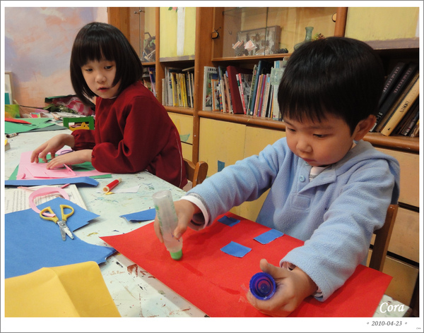 所以我乾脆就請他剪圖形,再自由的貼上去,他也開心的剪了一堂課