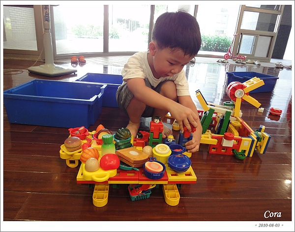 安靜了大半節的阿寬,最後還是忍不住下海玩積木