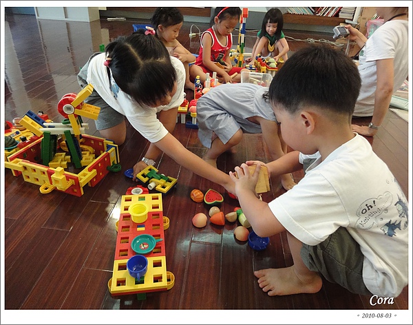 八月份開始,我們幾個社區的媽媽,幫平常上學的孩子,準備了一個月的積木密集課