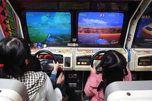 賽車,左邊那位矮子踩不到刹車和油門,阿娘只好上場