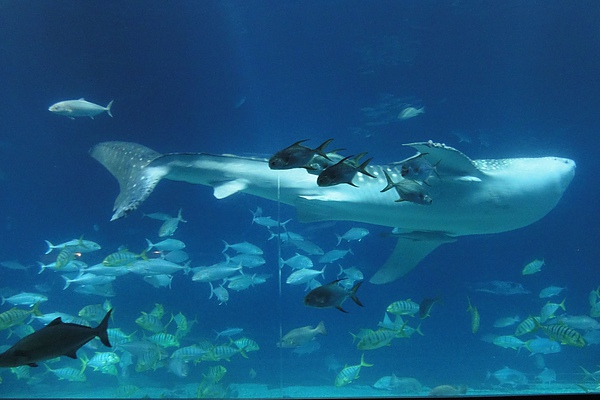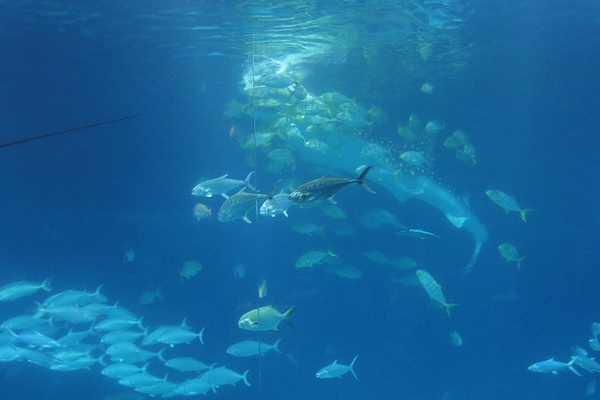 我們開始在臺灣海域的大洋池等著看鯨鯊餵食秀