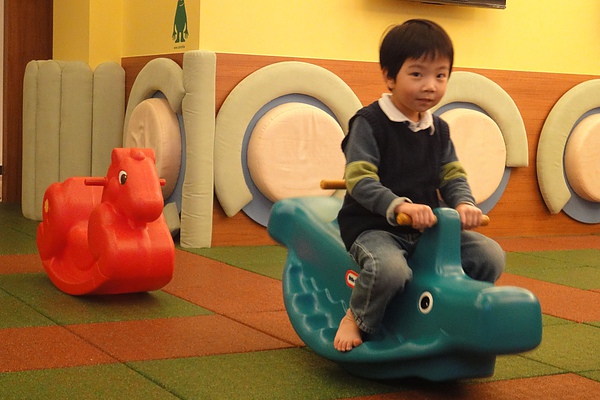 飯店的遊戲區,對阿呱來講,有點返老還童的感覺?
