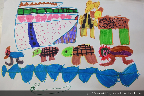 毛毛的畫工很細,船身的四個窗戶載著不同的動物,很容易懂,但畫得太慢了。。。