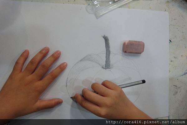 毛毛今天想畫素描,老師也由得她,就讓她畫南瓜