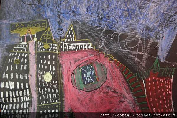 最後老師再教小朋友如何用蠟筆營造出華燈初上的天色