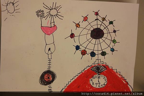 趁著等姐姐的空檔,呱呱又畫了第二張畫,最近實在很愛摩天輪耶