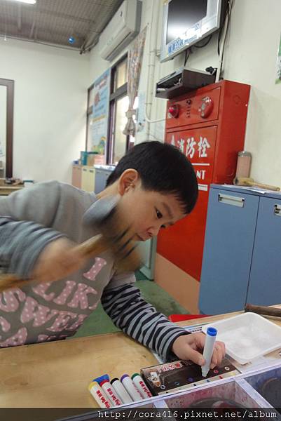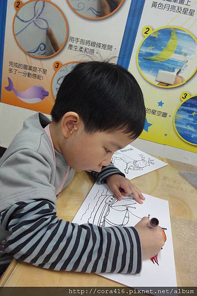 呱呱落後一步(因為他跑去畫白板),還在做他自己的彩色筆
