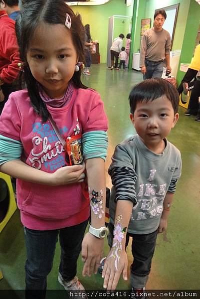 兩個小朋友都很開心,呱呱嚷著明天要讓同學看他的彩繪