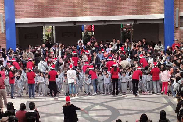 由於天氣太冷,原本預定的室外表演改為半室內(小學部的中央廣場)