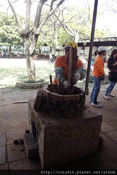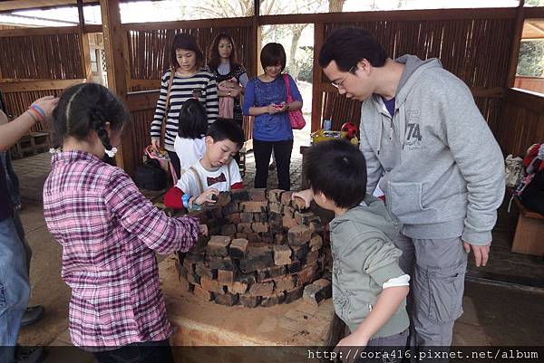 等到人到得差不多了,園方的人過來教我們要怎麼利用磗塊堆窯