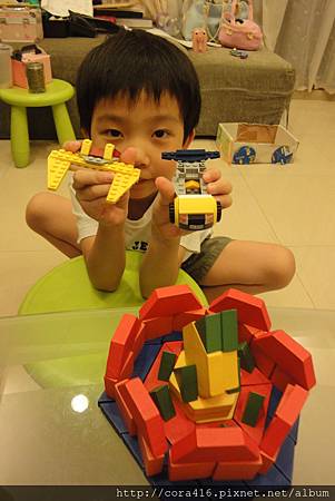 這陣子拔比買了很多陀螺和積木給他